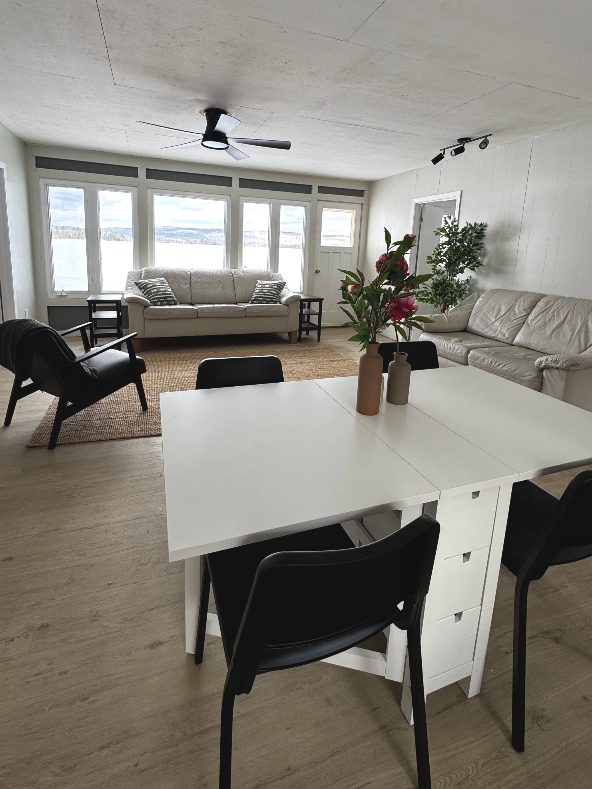 This cottage offers the same thoughtful layout as Cottage #1, with its own warm and welcoming beach vibe. Instead of a kitchen island with bar stools (in cottage A), this cottage offers a traditional dining table with seating for 6+.
